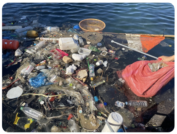 The trash that came out of the ocean surprised all of us. There were plastic bags twisted around rocks, worn pieces of plastic that had drifted from faraway places, disposable containers softened by saltwater, rusty cans, fishing net fragments, and even small pieces of broken fiberglass. One moment that stayed with me was seeing a thin layer of oil floating on the water’s surface. The ocean that should have been clear and blue looked as if it was coated with a film of exhaustion. It felt like the sea was quietly telling us how long it had been hurting.